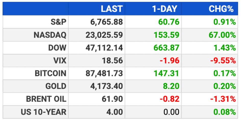 Dow +664, S&P +0.9%, Nasdaq +0.7% after early dip.
