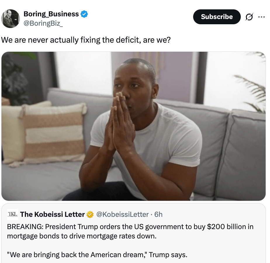 Trump directs $200B mortgage bond buy in housing push (more)