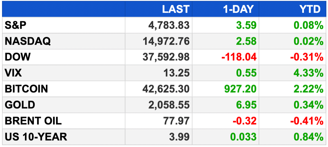 As of market close 1/12/2024. Bitcoin as of 1/15/2024.