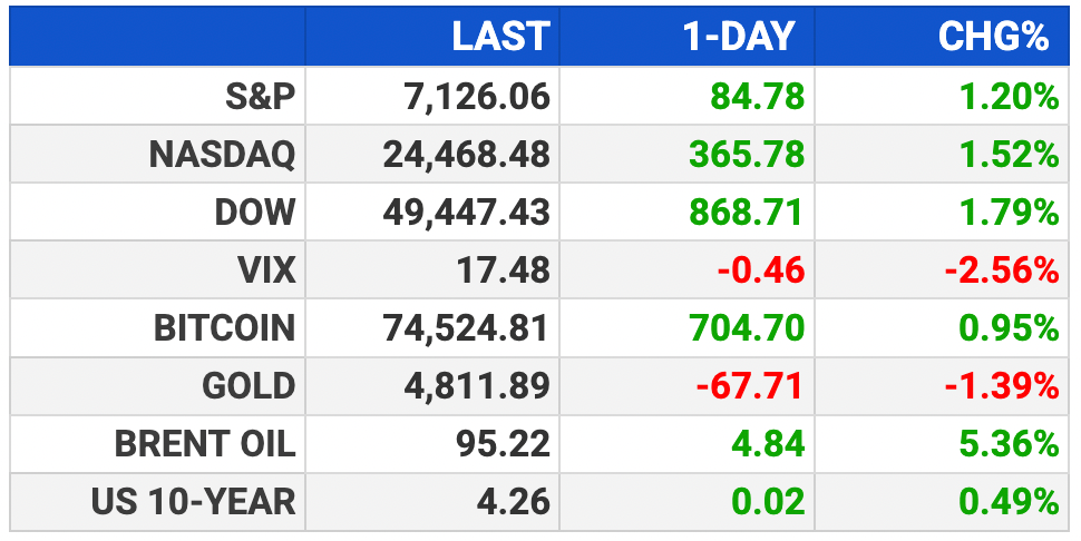 Week strong Dow +1.4%, S&P +3.3%, Nasdaq +5.2%