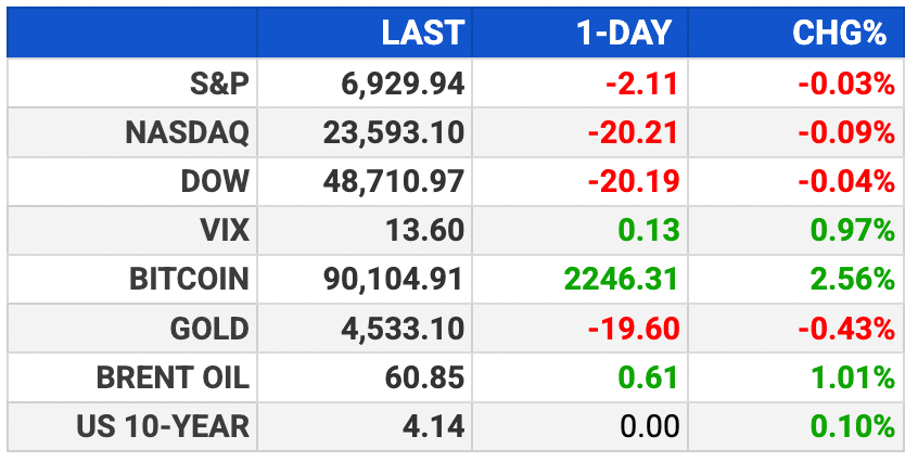 S&P hit 6,945 intraday Friday, closed near flat