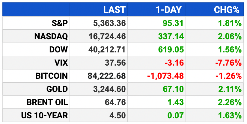 Futures: S&P +0.6%, Nasdaq +0.9%, Dow +139 pts (+0.3%).
