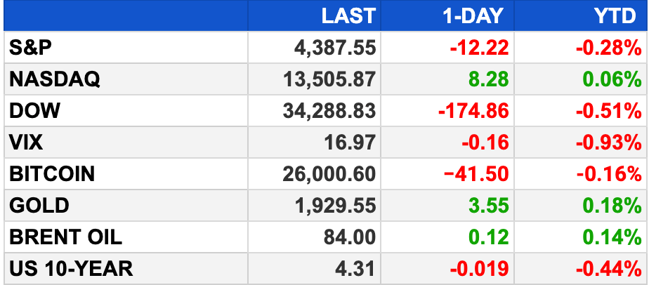 S&P 500, Dow down 0.3% and 0.5%, Nasdaq up 0.06% on mixed session