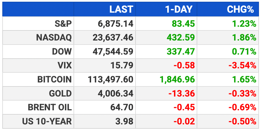 S&P closed above 6,800 for first time; all major indexes hit records.